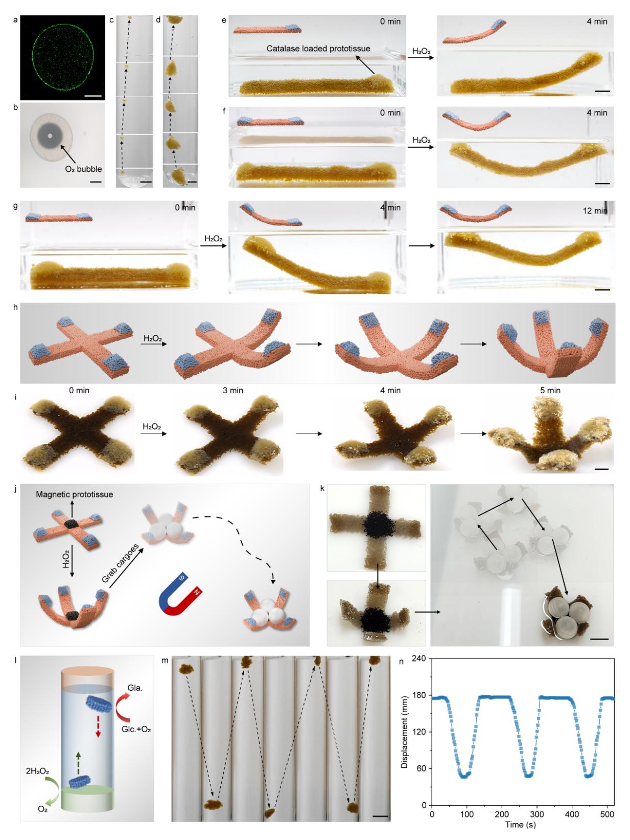 Figure 3. Biomimetic behaviors of prototissues and their application in soft robotics.